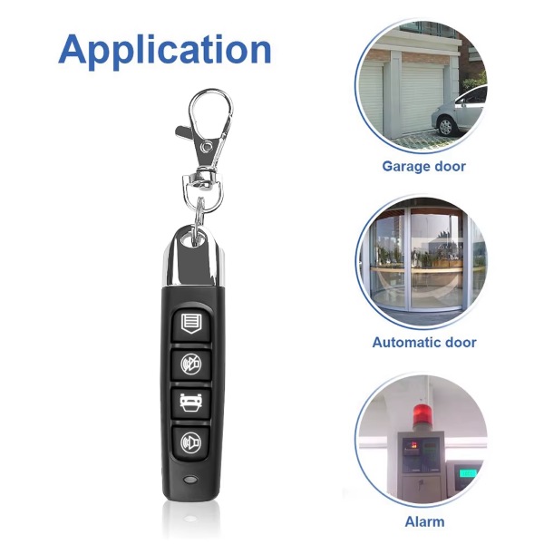 - Kopeerimine: Võtke originaalpult vasakusse kätte, meie dublikaator paremasse kätte ja hoidke kahte pulti võimalikult lähestikku; vajutage korraga mõlema puldi esimesi nuppe; umbes 2 sekundi pärast vilgub LED-tuli kiiresti 2 korda; ühe sekundi pärast vilgub märgutuli pidevalt, siis laske sõrmed lahti; seejärel vajutage klahvi, pärast edukat sidumist jääb tuli põlema, mis tähendab, et originaalpuldi esimese klahvi kood on kopeeritud teisele puldile; sama meetodit saab kasutada järjekorras teise klahvi, kolmanda klahvi jaoks… Kui kopeerimine õnnestub, on puldi funktsioon sama, mis originaalil.