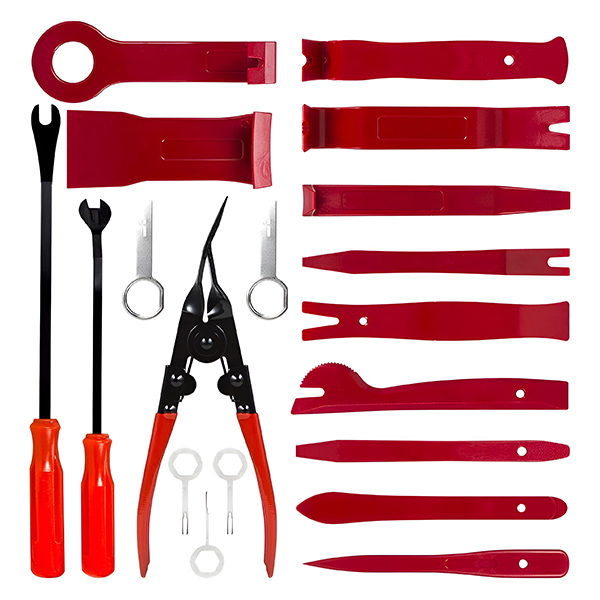 Tööriistad kaasas: 38 tk (trimmi eemaldamise tööriistad, klambrite eemaldamise tangid, kraapimisvahendid, polstri kinnitusdetailide eemaldajad, täppiskonksude võtjad, stereote eemaldamise tööriistad, autoklemmid)