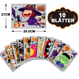 - Suurus: Halloweeni aknakleebised, mis koosnevad 10 kleebisest, iga kleebis 21 x 29,5 cm.