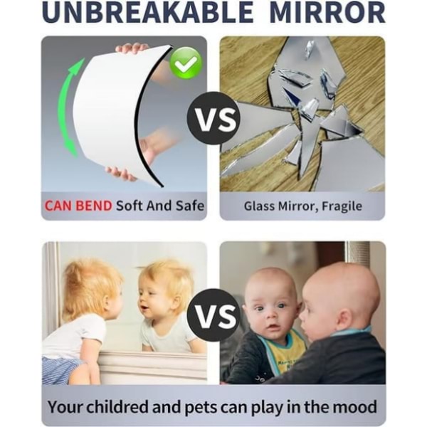 Valmistatud polüstüreenist, see peegel on ohutu, paindlik ja ei purune, kui see maha kukub.