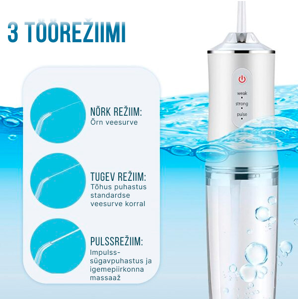 🦷 Kaasaskantav ja kohandatav, see juhtmevaba veepuhastusseade aitab teil saavutada tervislikuma naeratuse ka teel olles.