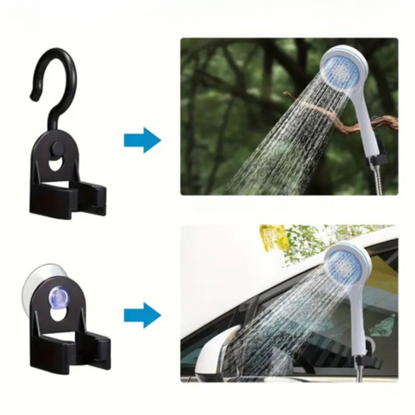 Iminapp lukustab dušipea igale tasasele pinnale; konks viib selle kõrgemale, kui vajate seda pea kohale. 600 g kaalu ja 1,5 m voolikuga mahub see igasse kotti, laeb teel sinna ja töötab sõltumata sellest, kas loputate saabastelt muda või pesete koera pärast pikka jalutuskäiku.