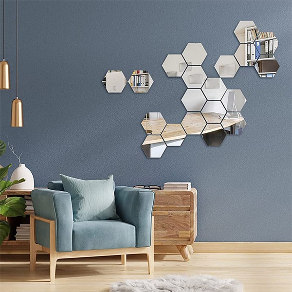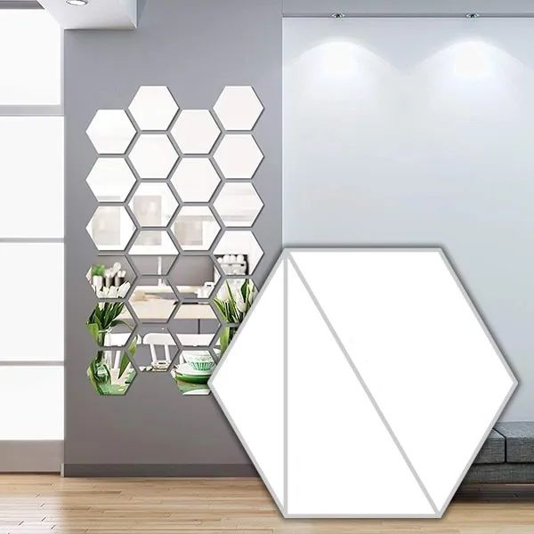 Need kleebised on valmistatud tipptasemel peegeldavast materjalist, mis jäljendab täpselt ehtsate peeglite välimust. Oma kuuekandilise kujuga lisab iga kleebis vaevata teie seintele kaasaegset hõngu.