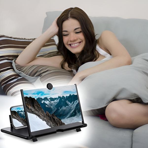 9,8-tolline telefoni ekraani suurendusklaas kasutab füüsilist optilist tehnoloogiat, et näidata pilte, videoid ja muid mobiiltelefoni faile.