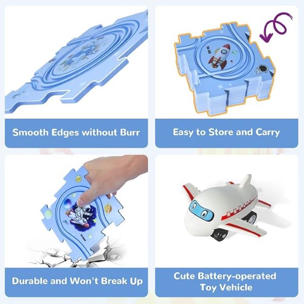 Komplektis on mitu rööbastee tükki, mis võimaldavad lastel hõlpsasti luua erinevaid paigutusi, suurendades nende loovust ja probleemide lahendamise oskust.