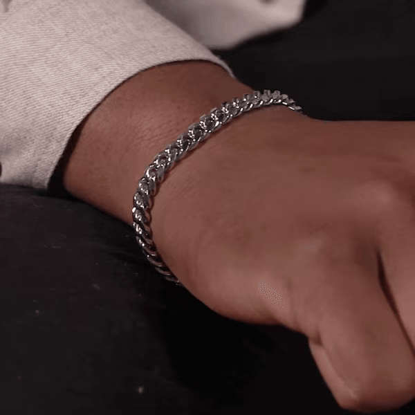 Tagasihoidlik glamuur: Peenike ripats, mida kaunistavad kuubiliste tsirkooniumkristallid, lisab rafineeritust, saavutades täiusliku tasakaalu meheliku teravuse ja elegantsi vahel. Kristallid püüavad valgust, pakkudes teie randmele diskreetset, kuid efektset sära.